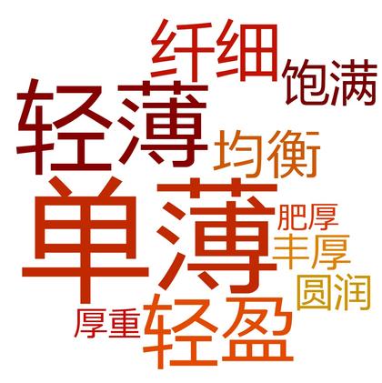 大多數(shù)描述酒體的詞匯,看上去都在描述身材。使用也很簡(jiǎn)單,從瘦弱的瘦子到健康的瘦子,再?gòu)慕】档呐肿拥剿琅肿?hellip;…過(guò)瘦指的是很寡淡松散,過(guò)胖則是油膩呆滯。鑒于大家平時(shí)對(duì)于描述身材的形容詞都很敏感,我想這里不需要再解釋哪些詞是褒義哪些是貶義: