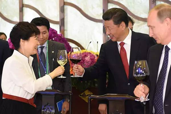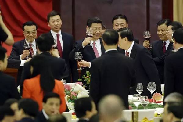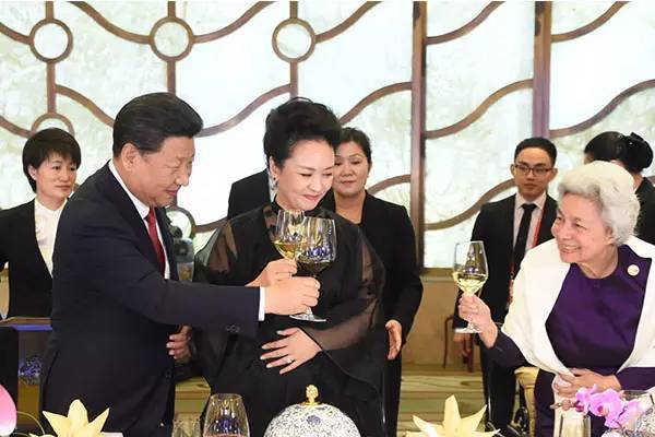 宴會(huì)上一團(tuán)和氣,習(xí)大大與彭麻麻與各國(guó)的領(lǐng)導(dǎo)親切的交談,整個(gè)宴會(huì)廳都呈現(xiàn)出一派其樂(lè)融融的氣氛。
