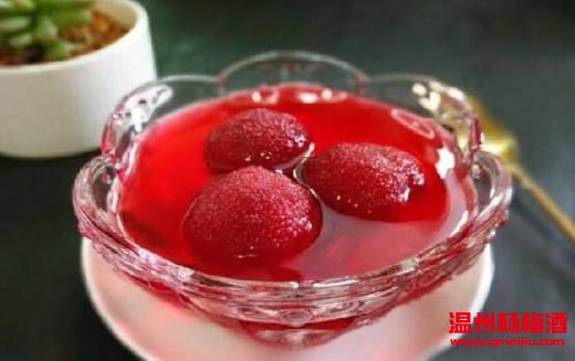 楊梅酒是由楊梅、白酒和冰糖按一定比例制作而成的飲品,味香甜,含葡萄糖、果糖、